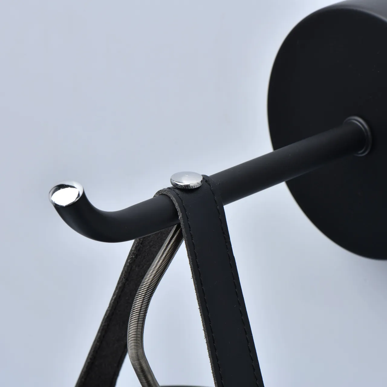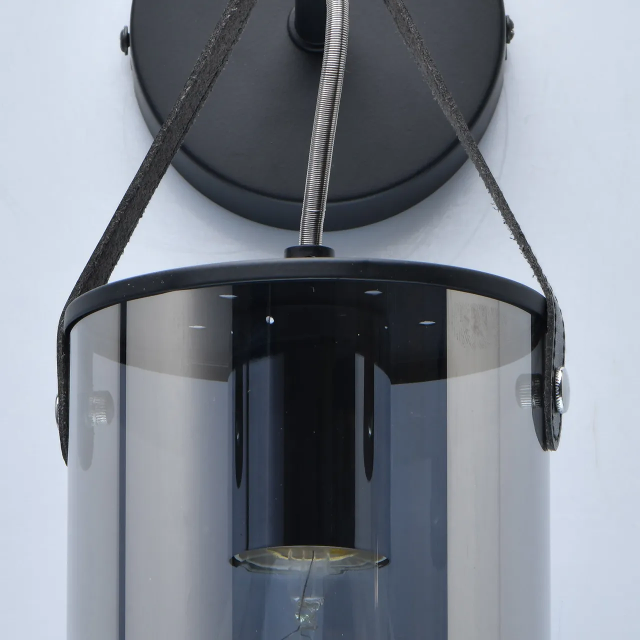Основание/металл/черный Плафон/стекло/серый Декор/кожа/черный