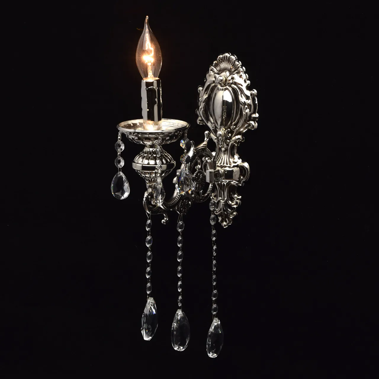 Металлическое основание серебряного цвета с патиной. Декор - хрусталь