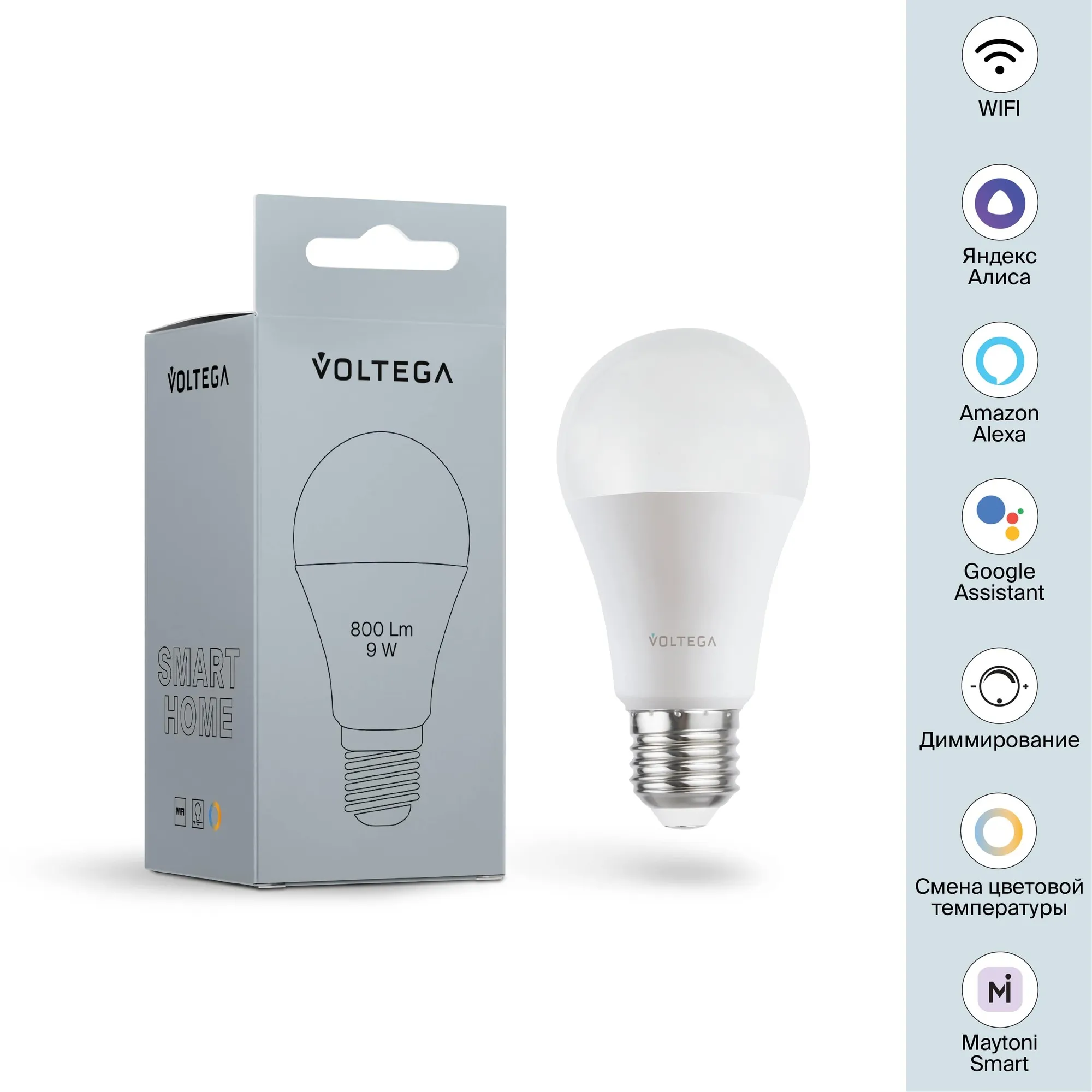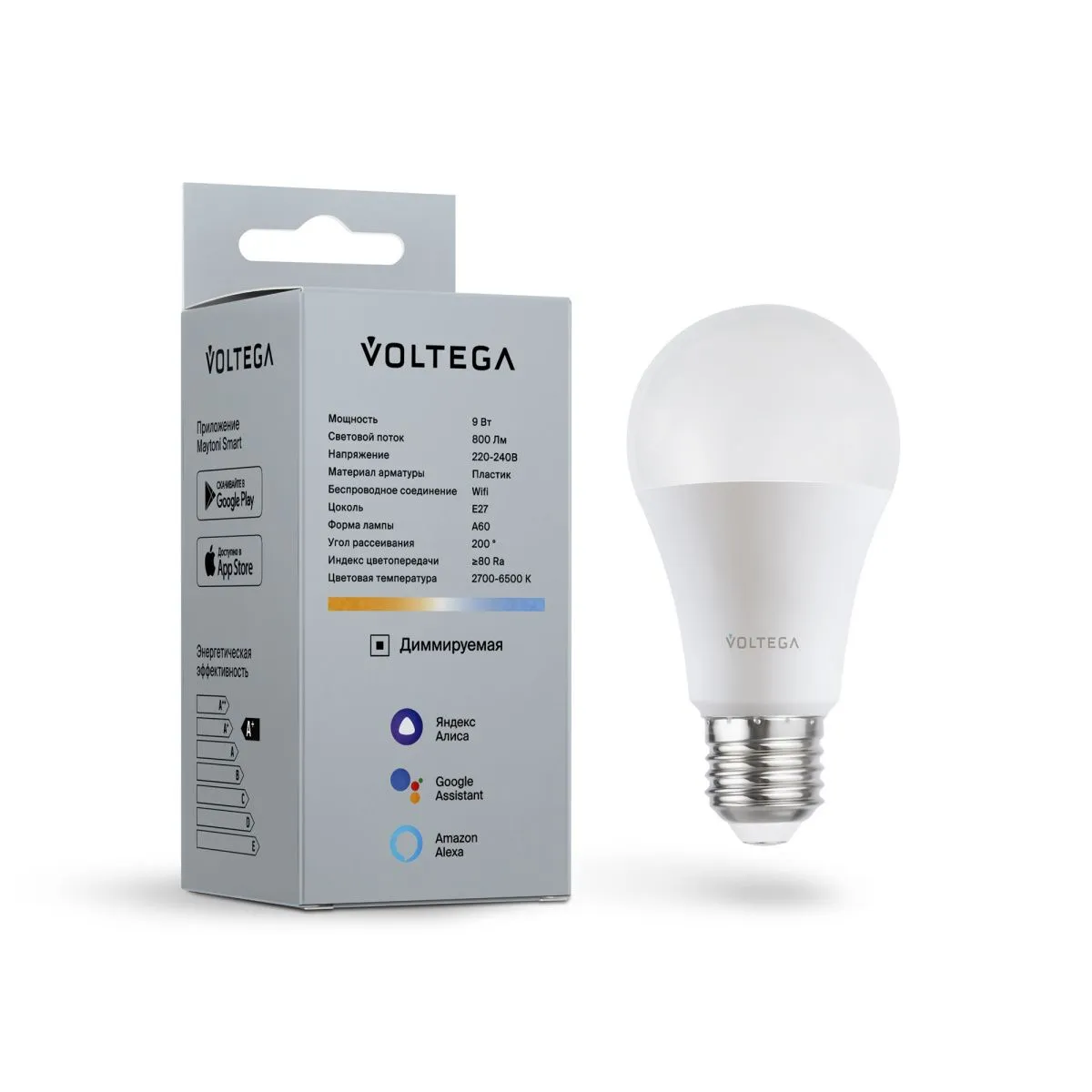 Лампа светодиодная диммируемая Voltega E27 5W 2700К матовая VG-A60E27cct-WIFI-9W 2429 купить в Клину по лучшей цене
