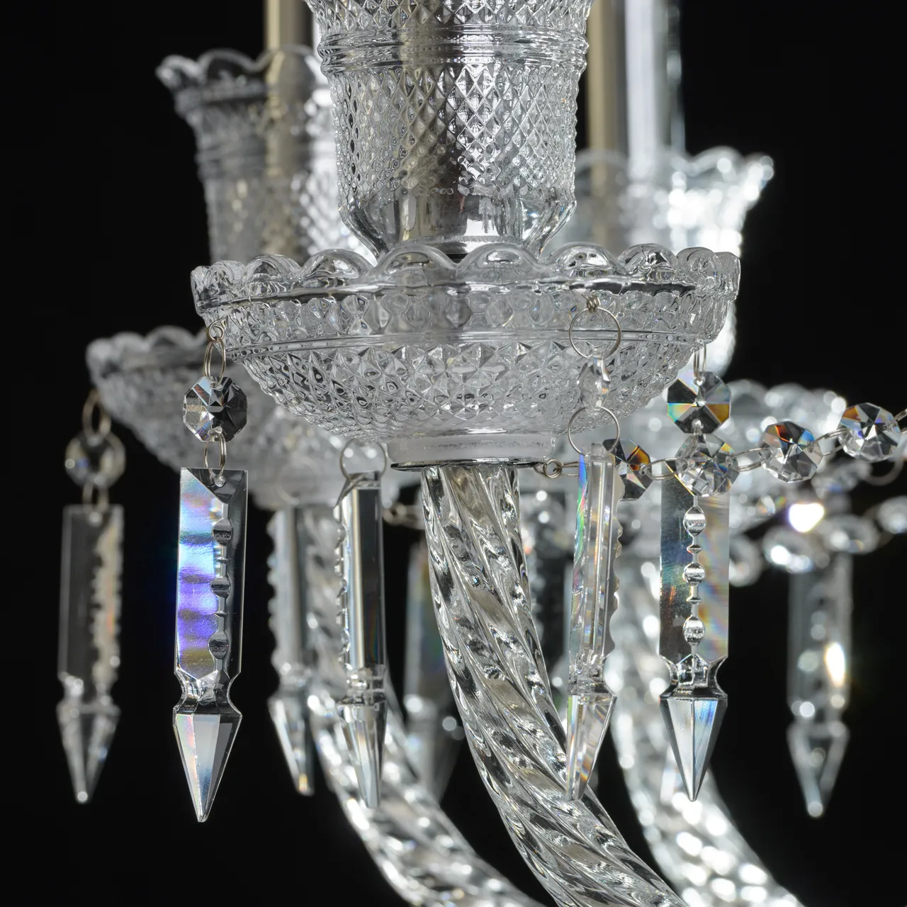 Металлическое основание цвета хрома, декоративные элементы из стекла и прозрачного хрусталя