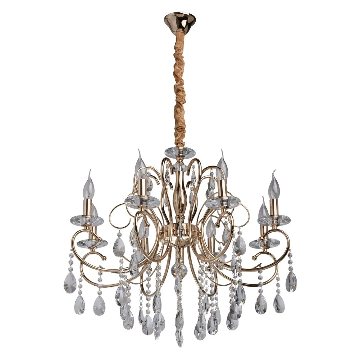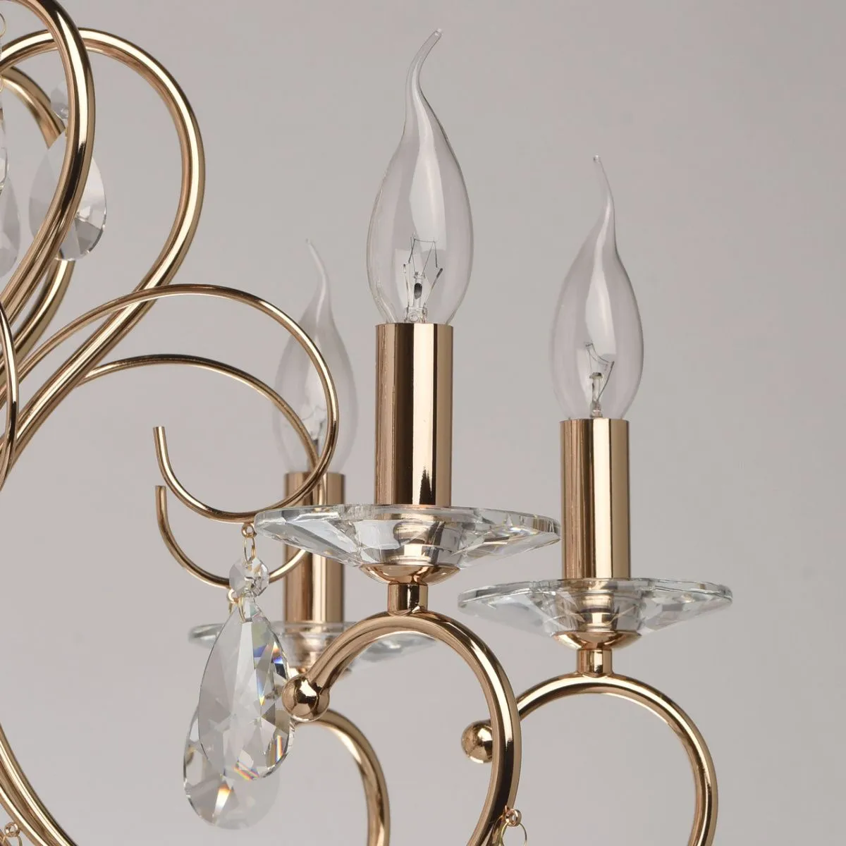Металлическое основание цвета французского золота. Декор - хрусталь, высокого качества.