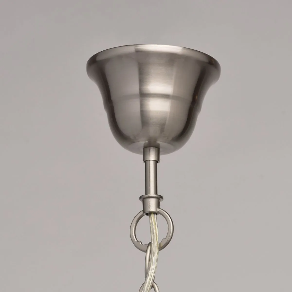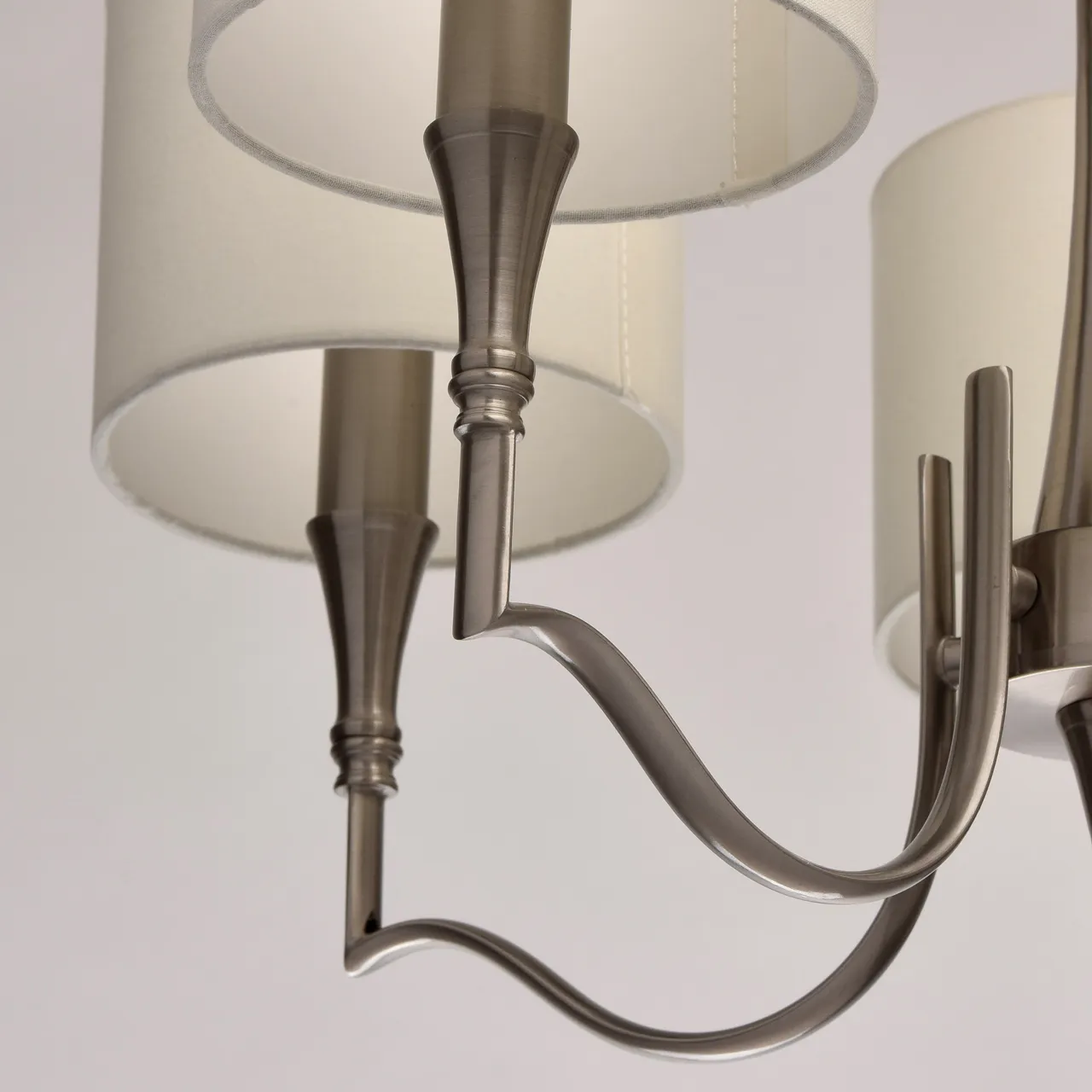 Металлическое основание цвета сатинового никеля. Абажуры - текстиль сливочного цвета