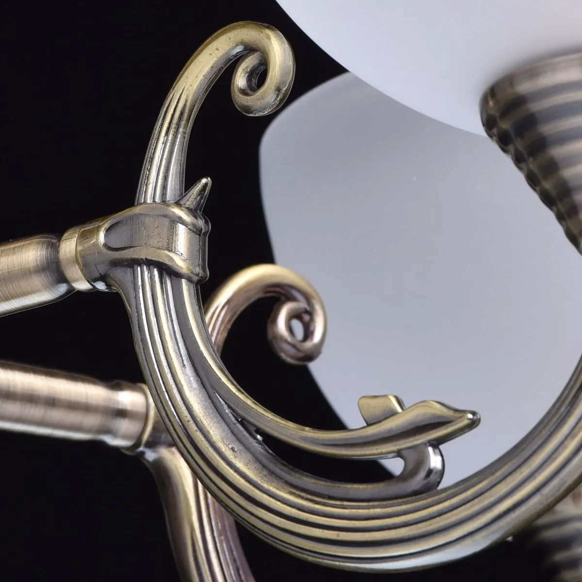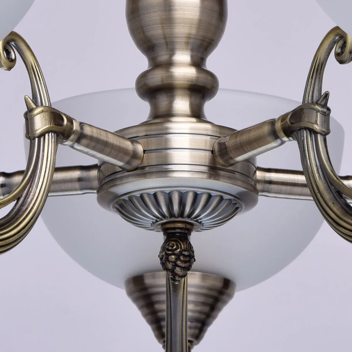 Алюминиевое основание, плафоны из матового стекла.