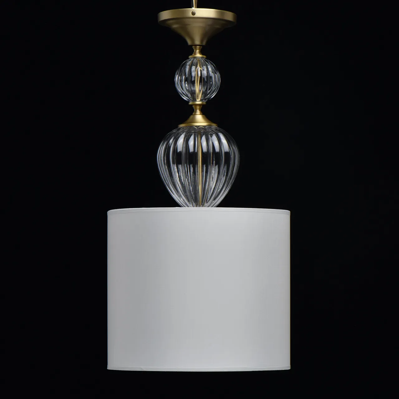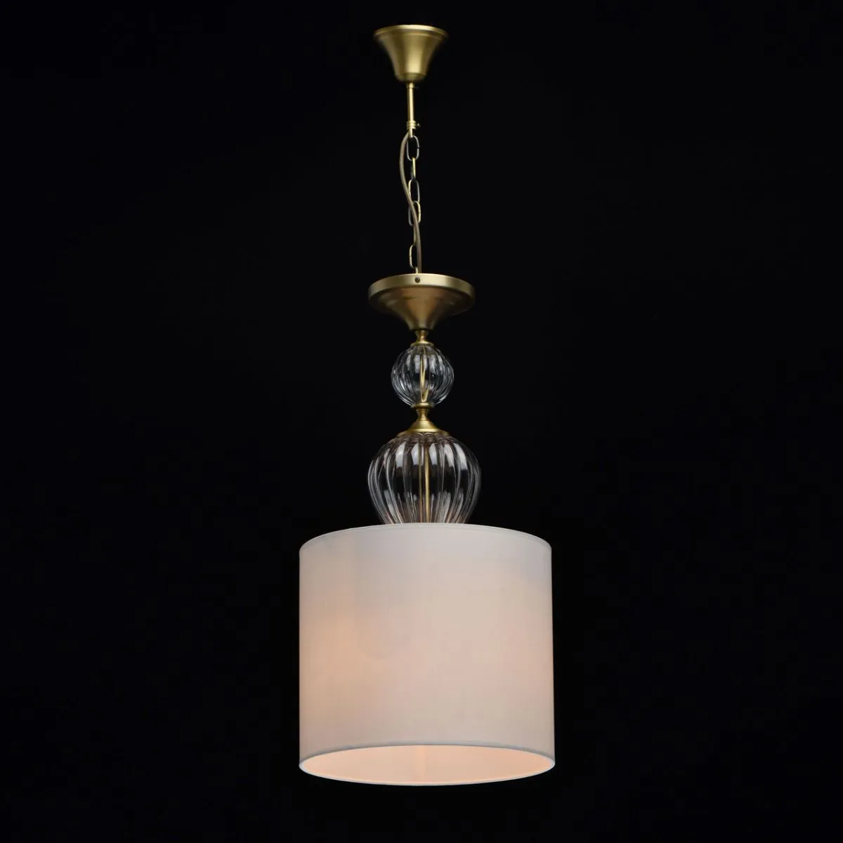 Основание/металл/латунь Абажур/текстиль/белый Декор/стекло
