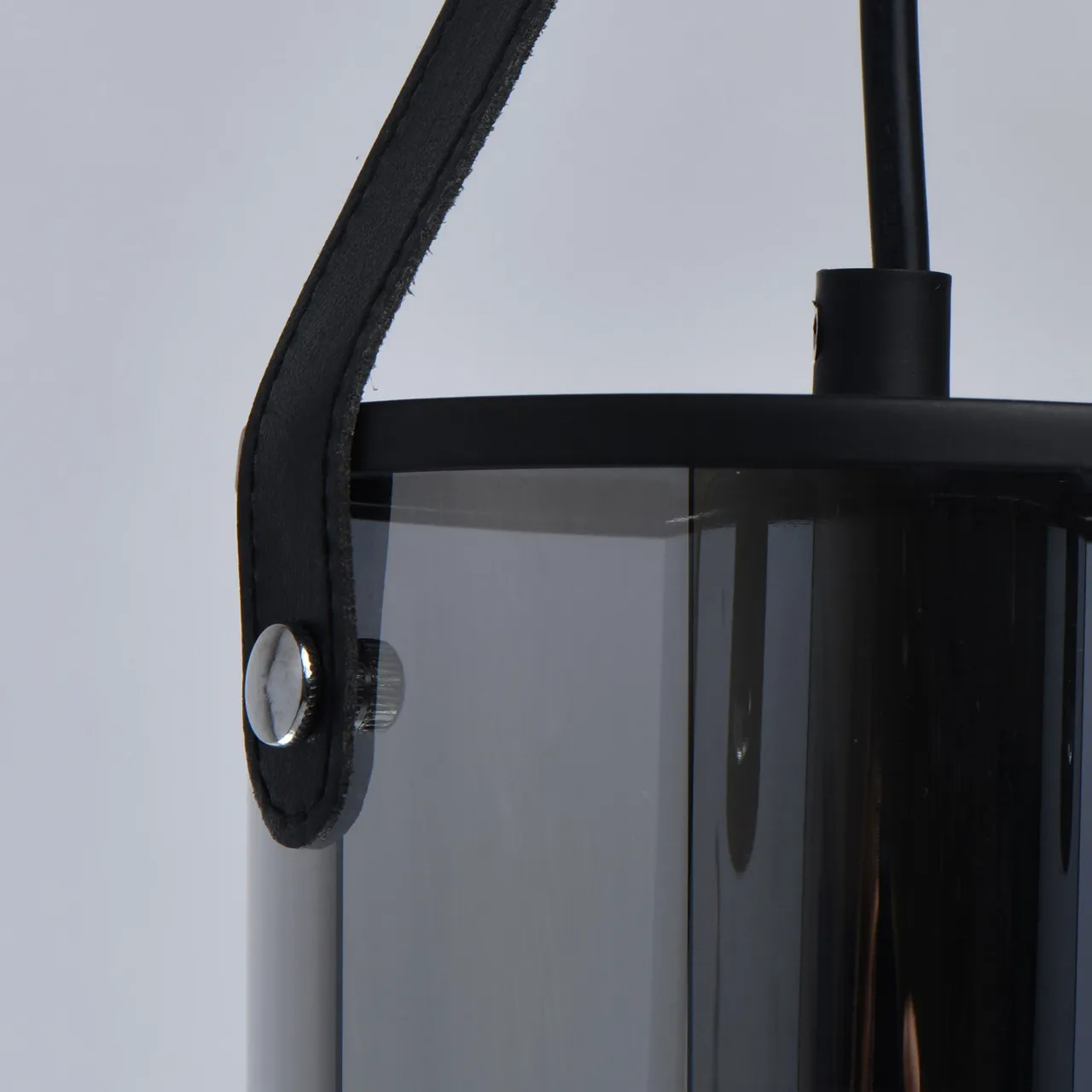 Основание/металл/черный Плафоны/стекло/серый Декор/кожа/черный