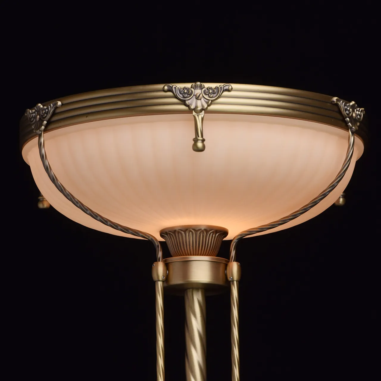 Алюминиевое основание цвета античной бронзы, стекляный плафон цвета ванили.
